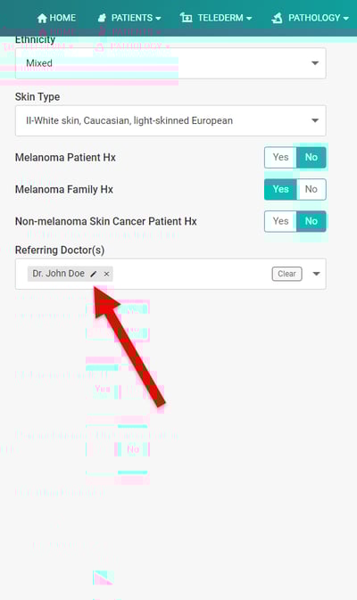 - You can edit the referring doctor's details here.