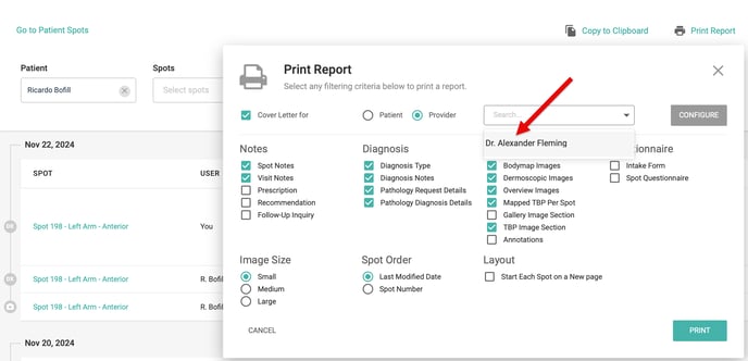 For emailed PDF reports, the referring doctor will be automatically added.